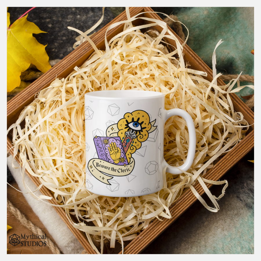 A perfect gift for your Clerics! Warn your allies with our beautiful "Beware the Cleric" mugs.