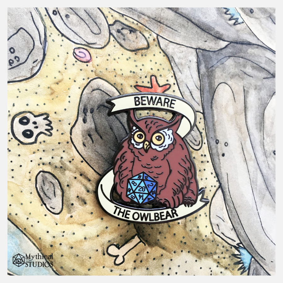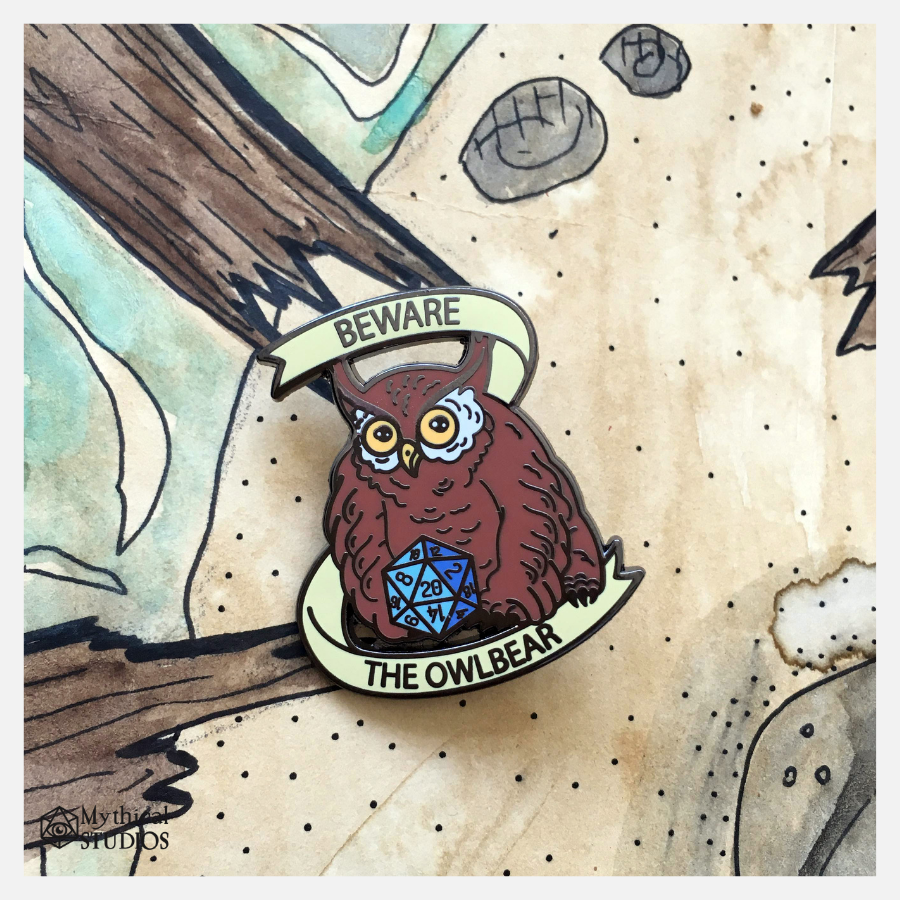 One of the coolest creatures ever imagined, the ferocious Owlbear! Now in enamel pin form!